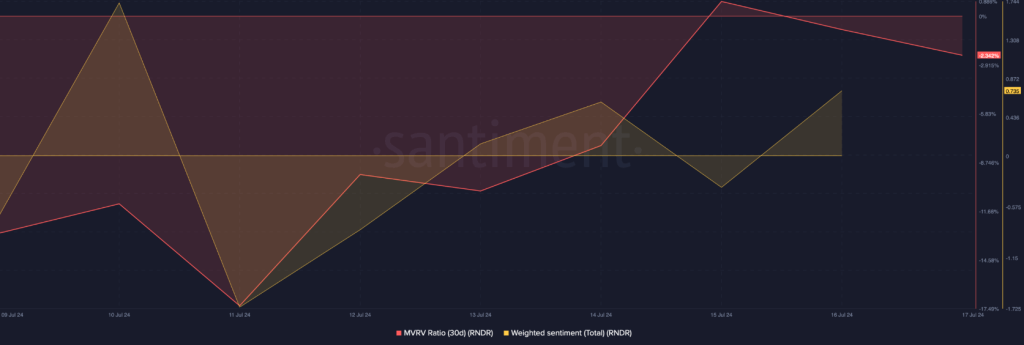 Das MVRV-Verhältnis des Tokens verzeichnete am 16. Juli einen Rückgang, was als bearishes Signal interpretiert werden kann. Allerdings sahen wir, dass das gewichtete Sentiment im positiven Bereich lag, was bedeutete, dass das bullishe Sentiment um den Token zunahm.