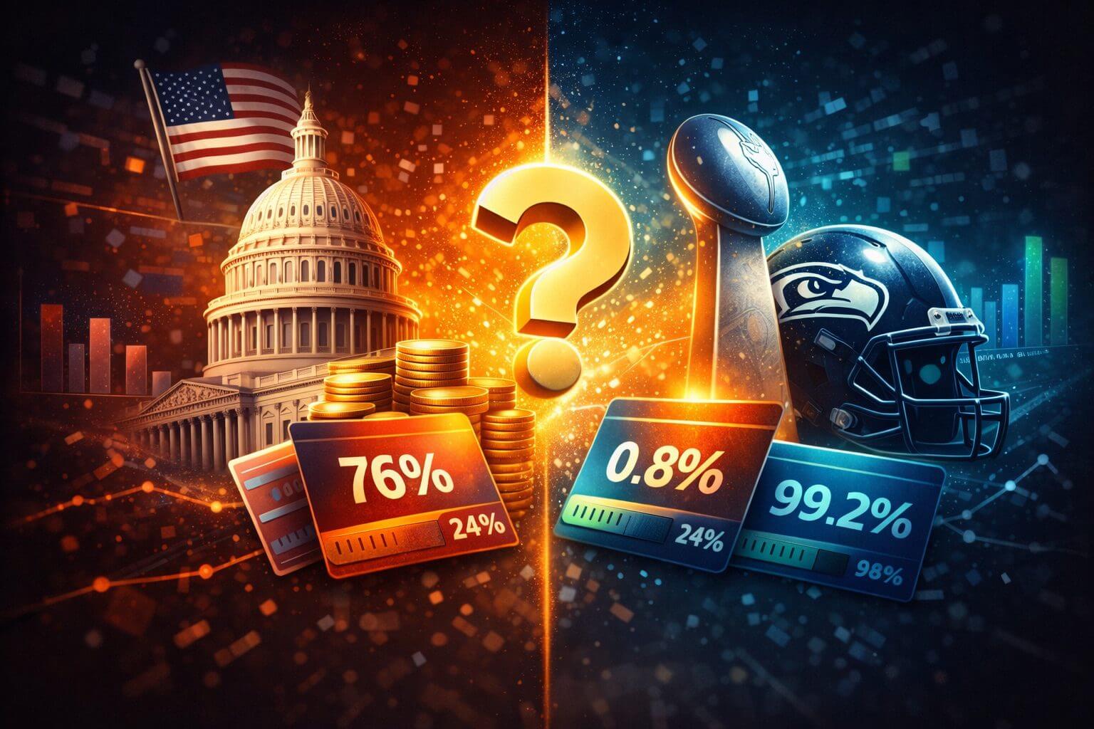 Besonders auffällig sind Ereignisse, die im Vorfeld als sehr unwahrscheinlich galten. Der Sieger des Big Game 2026, Seattle, hatte zu Beginn lediglich eine Wahrscheinlichkeit von 0,8 %. Dennoch wird genau dieses Szenario Realität und ist mit 704 Millionen US-Dollar sogar der größte Markt des Quartals.