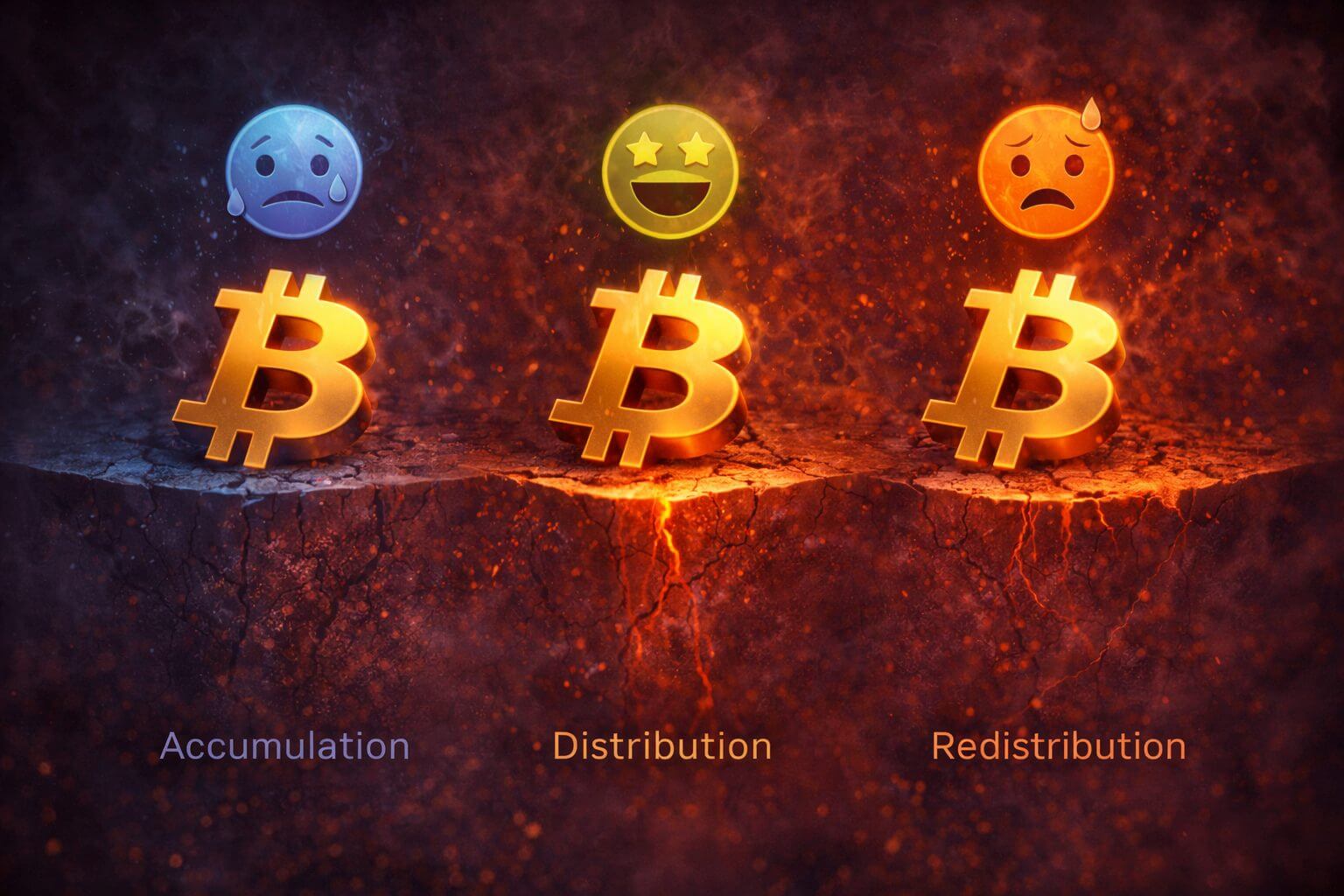 Darauf folgt mitunter eine Redistributionsphase. In dieser Zeit glauben Investoren, dass der Boden bereits erreicht ist, während der Markt zuvor einen deutlichen Rückgang erlebt hat. Trotz dieses Rückgangs bleibt das Vertrauen in weitere Kursanstiege bestehen, was laut Wedson eine risikoreiche Situation schafft.