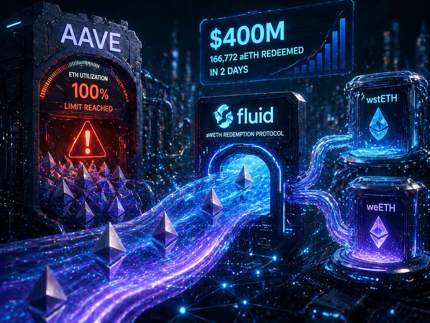 Fluid reagiert darauf mit der Einführung eines sogenannten aWETH-Redemption-Protokolls. Dieses System ermöglicht es, feststeckende ETH-Positionen in andere Assets wie wstETH und weETH umzuwandeln, sodass Nutzer dennoch Zugriff auf ihr Kapital erhalten.
