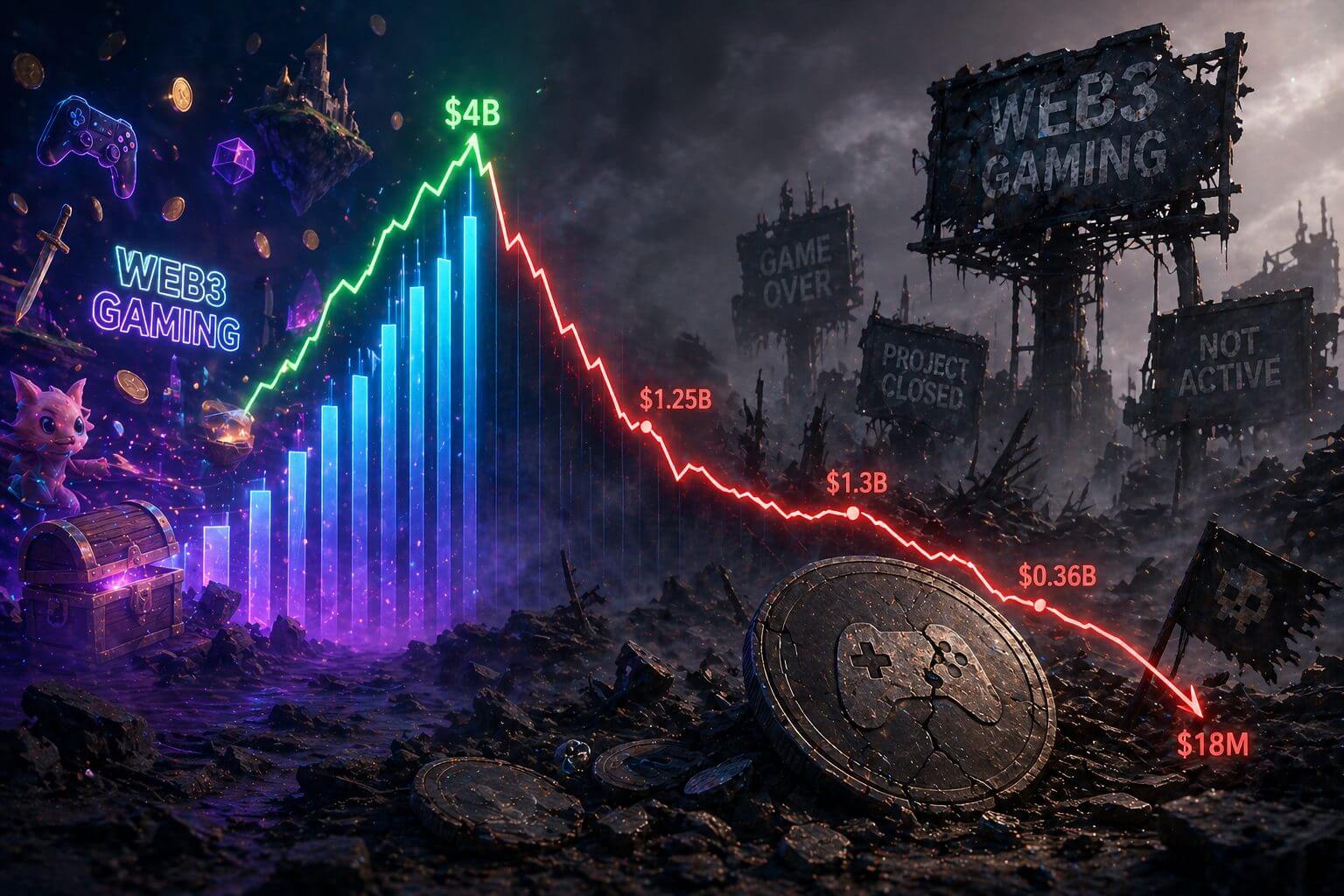 Die Zahlen zeichnen ein klares Bild: weniger Kapital, weniger aktive Projekte und Tokens, die stark unter Druck stehen. Dennoch bedeutet dies nicht automatisch das Ende von Web3-Gaming, sondern vielmehr einen harten Reset des Marktes.